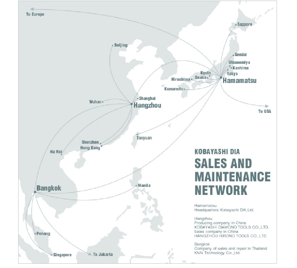 小林ダイヤの製品は、アジアをはじめとする世界各国でお使いいただいており、特にプリント基板用切削工具には、高い評価をいただいております。