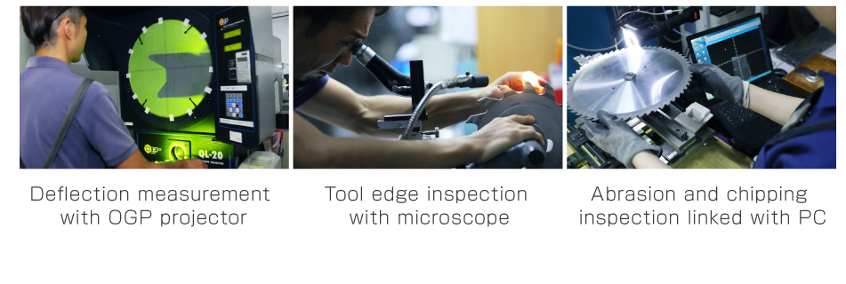Our technology is built upon fusion of craftsmanship with experiences of hand processing and substantial modern facilities. To support any complicated custom-made cutting tool, we own and utilise over 30 NC processing machines equipped with the latest technology, such as electric discharge machines, wire processing machines, NC grinders of VOLLMER and WALTER from Germany, ANCA from Australia and so on.